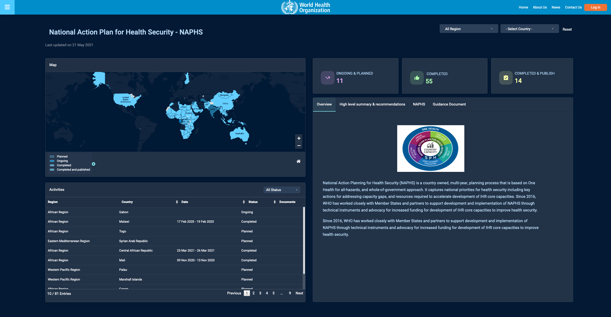 Overview: To strengthen country capacity for health emergency preparedness, response and resilience, Member States need to develop, implement and monitor National Action Plans for Health Security (NAPHS).
