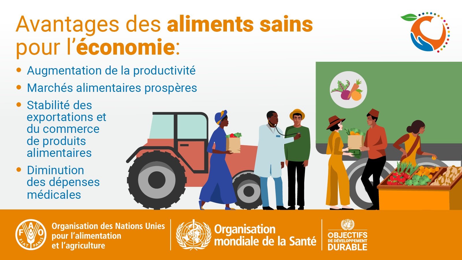 Sous le thème « Des aliments sains pour un avenir sain », la campagne de cette année vise à souligner les effets bénéfiques immédiats et à long terme de la production et de la consommation d’aliments sûrs pour la population, la planète et l’économie. Reconnaître les liens systémiques qui existent entre la santé des êtres humains, des animaux, des plantes, de l’environnement et de l’économie nous aidera à faire face aux besoins de demain.