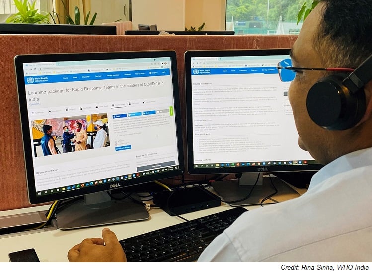 An online course for Rapid Response Teams (RRTs) in India launched on 30 June 2021 has become immensely popular amongst frontline emergency responders in India and the region. As of 15 September 2021, there were 3 063 registered users to the course from 111 countries, including India. Close to 51% learners are from India, and the rest are from China, Indonesia, United States, Philippines, Vietnam, Saudi Arabia and Mexico.